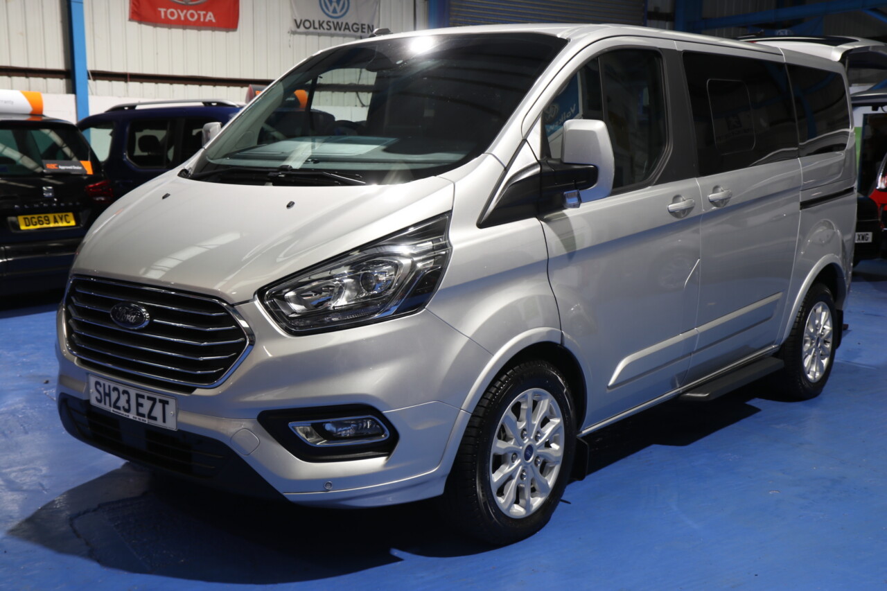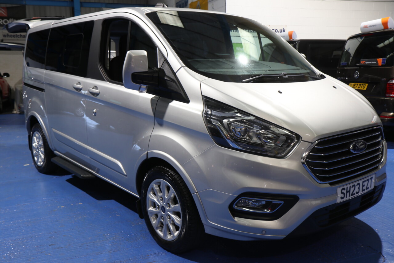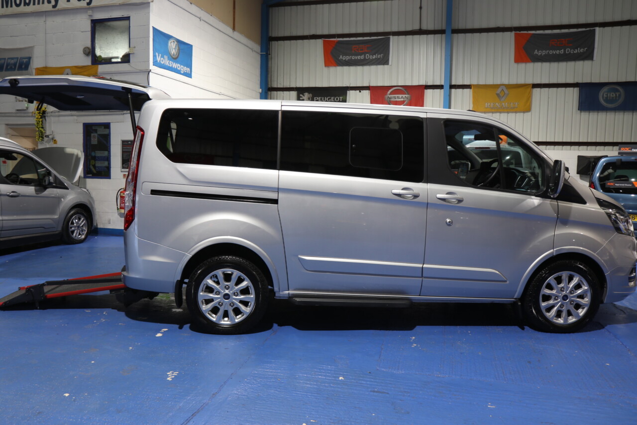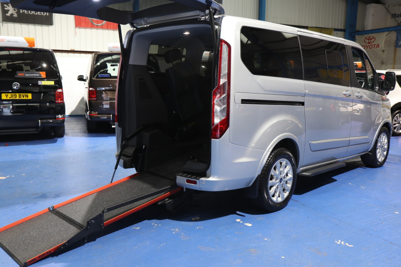 Ford Tourneo Custom wheelchair passenger upfront next to the driver. With the wheelchair space next to the driver’s seat, all belts and straps for securing the wheelchair, this car has a low-level Power ramp and a power tailgate. 4 seats plus the wheelchair, Spare keys and 12 months RAC warranty, Which can be extended long With An RAC Extended Warranty, valeted to the highest standard; immaculate throughout, truly pristine interior with absolutely genuine 2150 miles from new, UK delivery service, part exchange welcome, low rate finance, please call The Wheelchair Car Group 9am~8pm any day including weekends on 0161 793 5934 (Stock Ref SH23EZT).