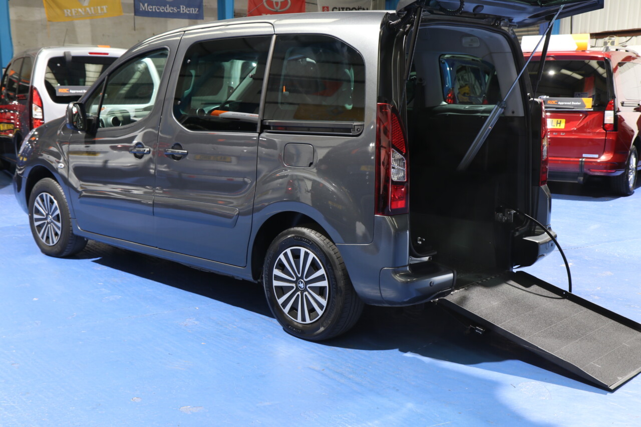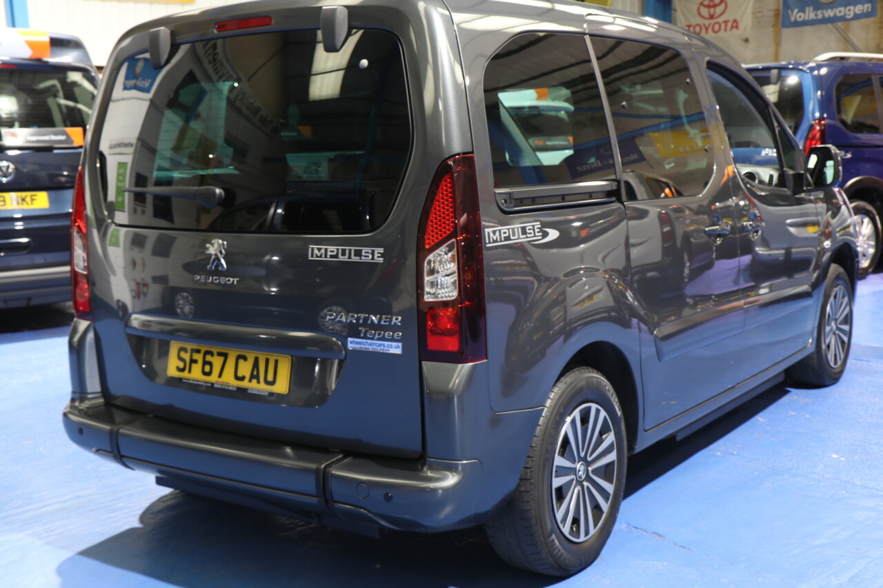 Peugeot Partner Wheelchair Upfront Auto wheelchair passenger upfront next to the driver car, the disabled person rides next to the driver, Grey metallic paint. The lowered floor on this car goes all the way to the dash; There is a spare seat that can be put into the passenger side, a power tailgate, and a power ramp. It is a lovely car. All straps and belts to secure the wheelchair, spare keys, full MOT, and scarce car. UK delivery service, part exchange welcome, low rate finance; please call The Wheelchair Car Group 9am~8pm any day, including weekends, on 0161 793 5934 (Ref; sf67cau).